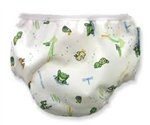 Mother Ease Training PantsFor lightweight protection against accidents while your child is potty training. This easy to pull up garment has fully elasticized waist and leg openings. A layer of durable white cotton terry is sewn to a waterproof polyester cover making a functional product which is easy to use for both you and your child.Available in White or Eco Theme prints.SizeWeight RangeAbsorbencySm.20-30 lbs.5 oz.Lg.30-40 lbs.5.5 oz.XLg.40-60 lbs.6oz.Please note these do not have the absorbency of a diaper.